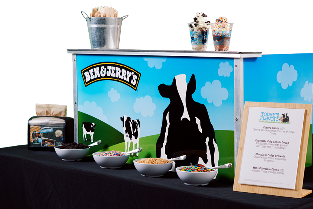 From ice cream wedding catering to corporate ice cream catering, your Ben & Jerry’s Scoop Shop catering team does it all! Ask about your local Scoop Shop’s many ice cream catering options, from cup and cone parties to ice cream sundae bars — all featuring your favourite Ben & Jerry’s ice cream and vegan Non-Dairy flavours! Order our ice cream catering cart or ice cream truck catering and we’ll set it up, scoop it up, and clean it up. All you and your guests have to do is show up and enjoy the party!